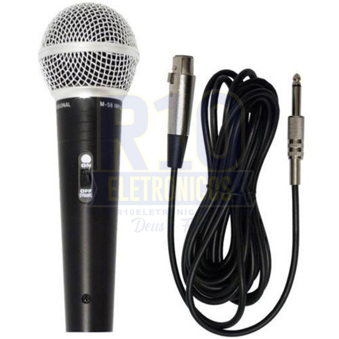 Microfone Com Fio Dinâmico Profissional Metal 5mts Sm-58