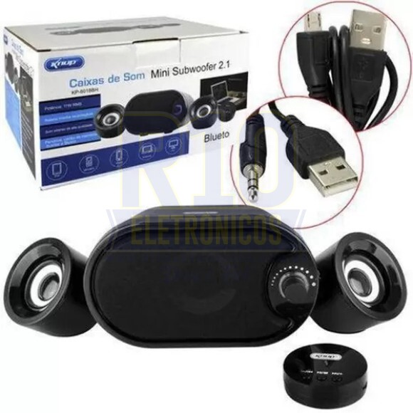 Caixa de Som Mini Subwoofer 2.1 Bluetooth Portatil KP-6018BH KNUP Preta