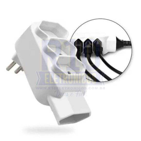 CARACTERÍSTICASCorpo em PolipropilenoCondutores latonadosSegurança e qualidadePráticoRECOMENDAÇÕES DE USO:Carregadores de notebookBombas de aquárioCarregadores de celularTelevisoresATENÇÃO => Não LIGAR fornos elétri...