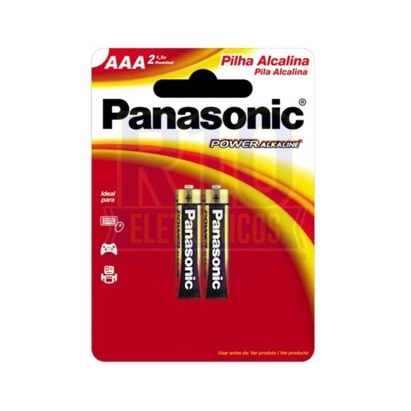 PILHA ALCALINA PALITO PANASONIC AAA alcalina da Panasonic foi desenvolvida para garantir longa duração nos mais diferentes aparelhos, principalmente nos que requerem alta drenagem de energia como câmeras digitais, brinquedos e outros.Caracteristicas:Modelo:Power AlkalineTamanho: AAAVoltagem:1,5VIdeal Para: Câmera, controle, brinquedos, teclados, mouse etc Conteúdo da Embalagem:02 Pilhas Alcalinas Palito AAA