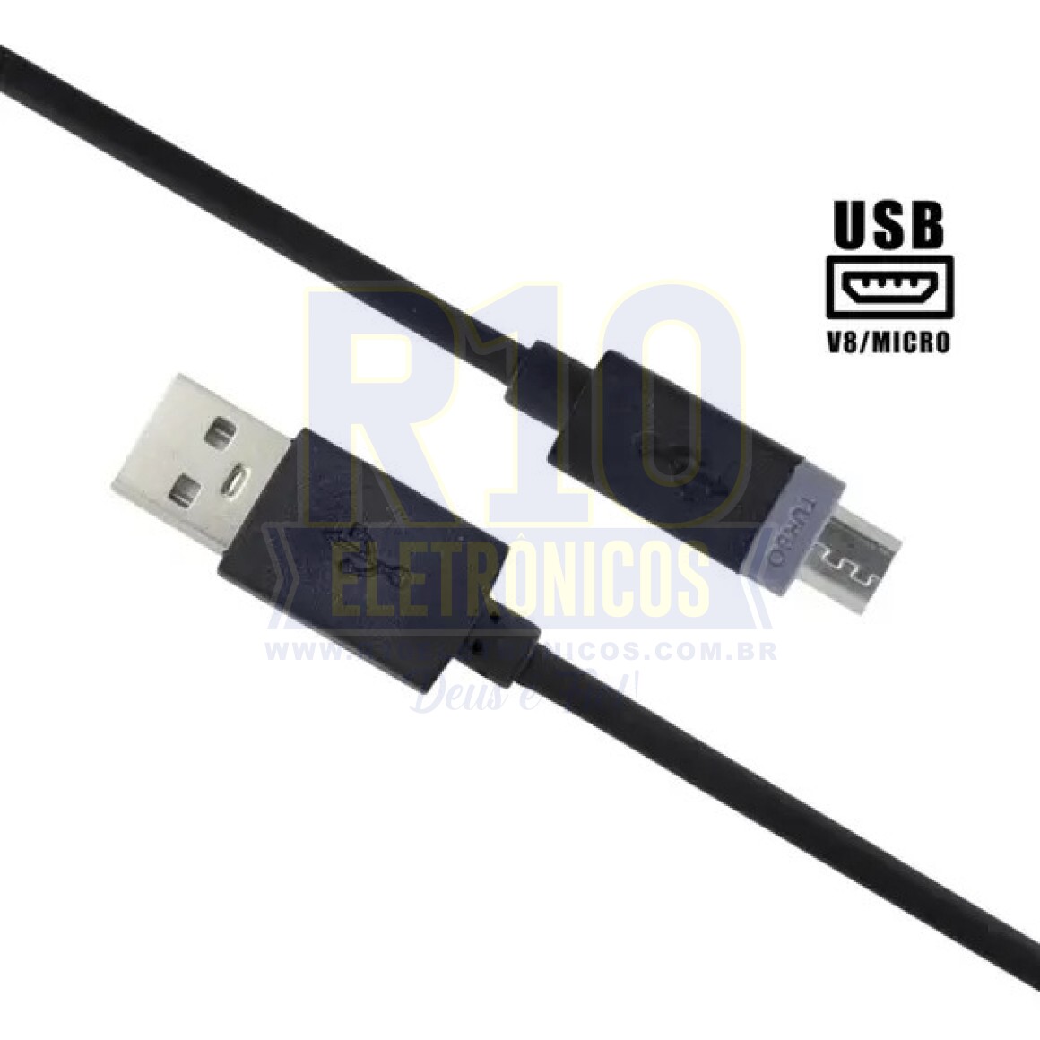 Cabo Carregador Celular Rápido USB 3.4A V8 Micro Turbo 25w 1m