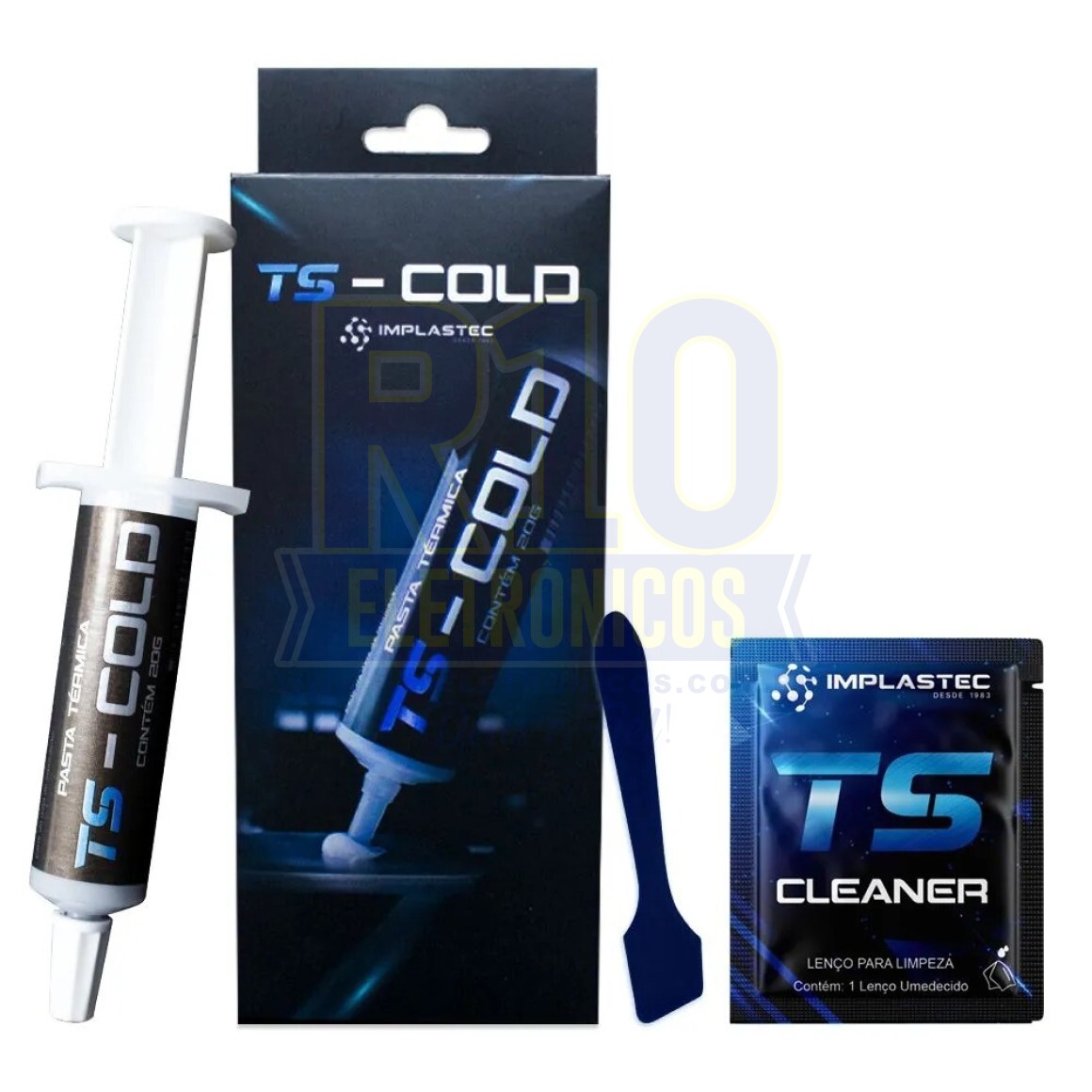 Produto profissional e completo para aplicação: 01 pasta térmica ts cold - 20 gramas; 01 espátula de plástico para auxiliar a retirada da pasta térmica antiga e também ajudar na nova aplicação, sachês para limpeza e 20 adesivos.