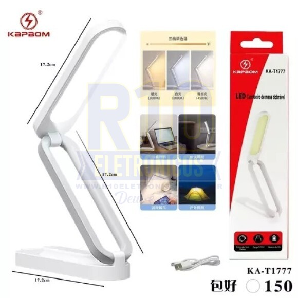 A luminária de mesa recarregável LED Kapbom KA-T1777 é uma escolha ideal para quem busca eficiência e sustentabilidade em sua iluminação. Com design moderno e funcional, esta luminária oferece iluminação ajustável, perfeita para leitura, trabalho ou estudo. A tecnologia LED proporciona uma luz suave e agradável aos olhos, enquanto a bateria recarregável garante praticidade e economia. Entre as características mais procuradas, destacam-se a longa duração da bateria, a portabilidade e a versatilidade de uso. Invista na Luminária de Mesa Recarregável LED Kapbom KA-T1777 e transforme seu ambiente com uma iluminação de qualidade e ecologicamente correta.