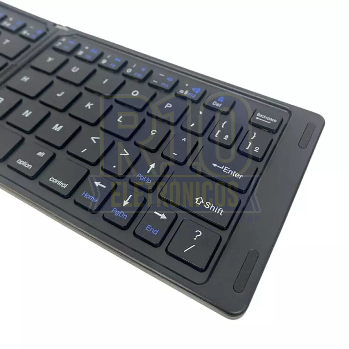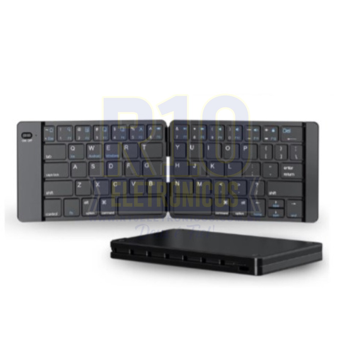 • Design portátil: Este teclado é compacto e leve, tornando-o perfeito para uso em movimento. Seu design dobrável adiciona à sua portabilidade, permitindo que você carregá-lo facilmente sem ocupar muito espaço.