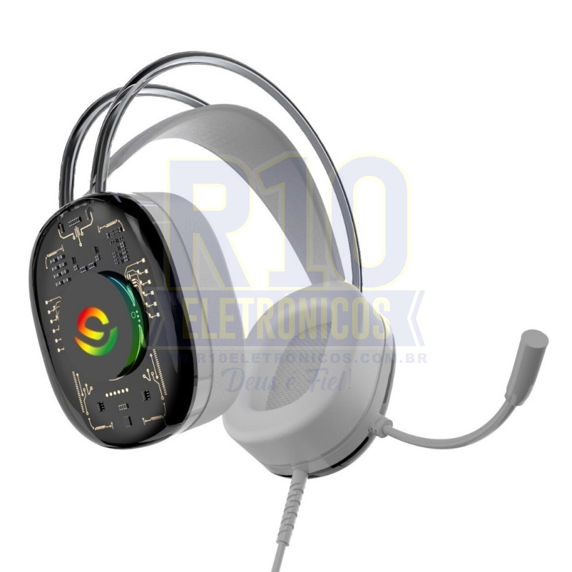 - Conexão: P2(Aúdio); USB(Luz RGB)