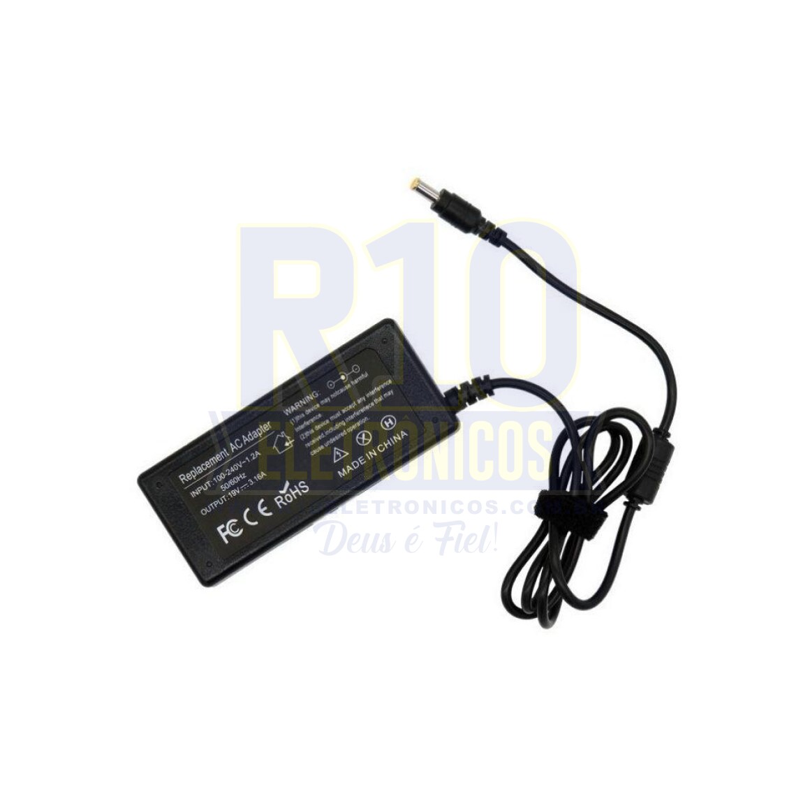 Descrição do produto Fonte para notebook compatível com modelo Samsung pino grosso com um pequeno pino no meio bem fino (5.0×3.0). A fonte possui seleção de voltagem de alimentação automática (Bivolt 100-240V) e possui cabo de força incluso. Especificações: – Marca: Knup – Modelo: KP-520 – Ponta grossa com um pequeno pino no meio bem fino (5.0×3.0) – Voltagem: 19V – Corrente: 3.16A – Potência: 65W – Entrada: Bivolt 100V 240V 50/60Hz – Compatibilidade: Em caso de dúvida verifique as especificações técnicas do seu notebook. Itens Inclusos: – 01 Fonte 19V 3.16A – 01 Cabo de Energia