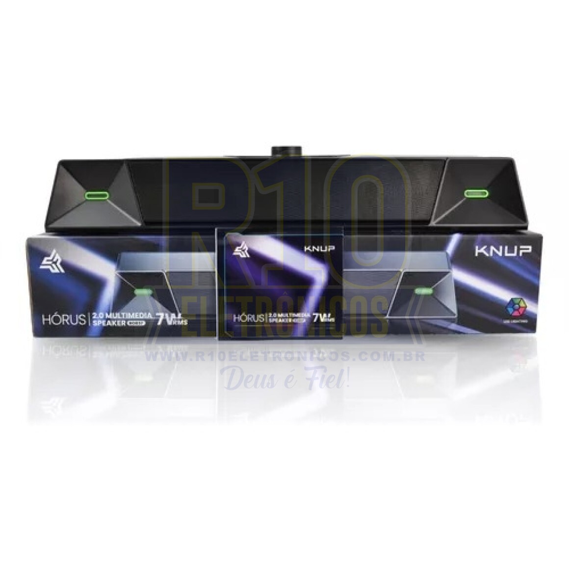 Potência: 7W RMS; Alimentação: 5Vdc/2A (Via USB); Resposta de frequência: 20Hz - 18KHz; Sensibilidade: 80dB; Dimensões: 40 x 6,5 x 8 cm (C x L x A); Iluminação em LED; Com controle de volume; Compatível com PC e Notebook;