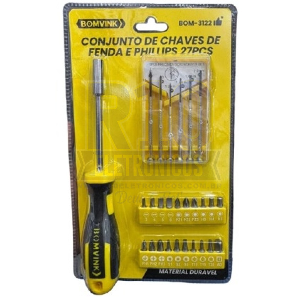 CONJUNTO DE CHAVES BOMVINK BOM-3122 FENDA E PHILLIPS C/27 PEÇAS