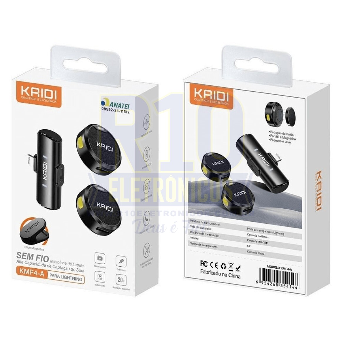 Este Sistema Microfone Duplo Kaidi KMF4-A Wireless Lightning para Smartphones possui frequência wireless de alta capacidade, transmissores com clipes magnéticos e autonomia de até 4 horas, assim como oferece uma alta qualidade de som, sendo portátil e muito fácil de usar. Projetado para captação simultânea de 2 pessoas, o conjunto traz tecnologia Plug and Play que não necessita de aplicativos e drivers, basta conectar no celular e usar. É perfeito para streaming ao vivo, reuniões, gravações, criação de conteúdo digital e muito mais.