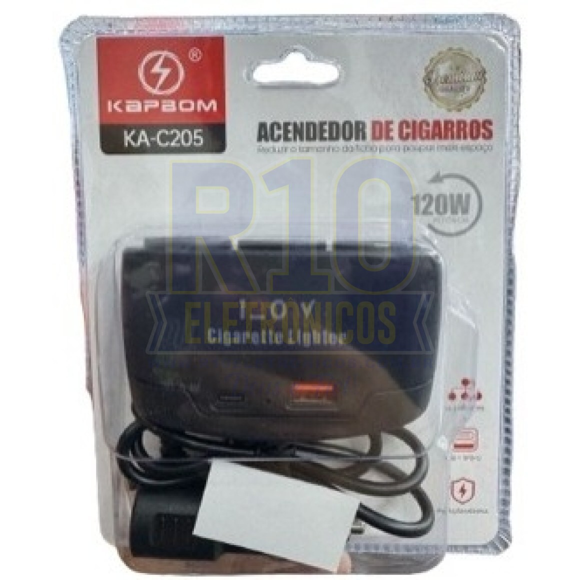 CARREGADOR VEICULAR KAPBOM KA-C205 120W COM 3 ACENDEDOR/1USB-C/1USB-A