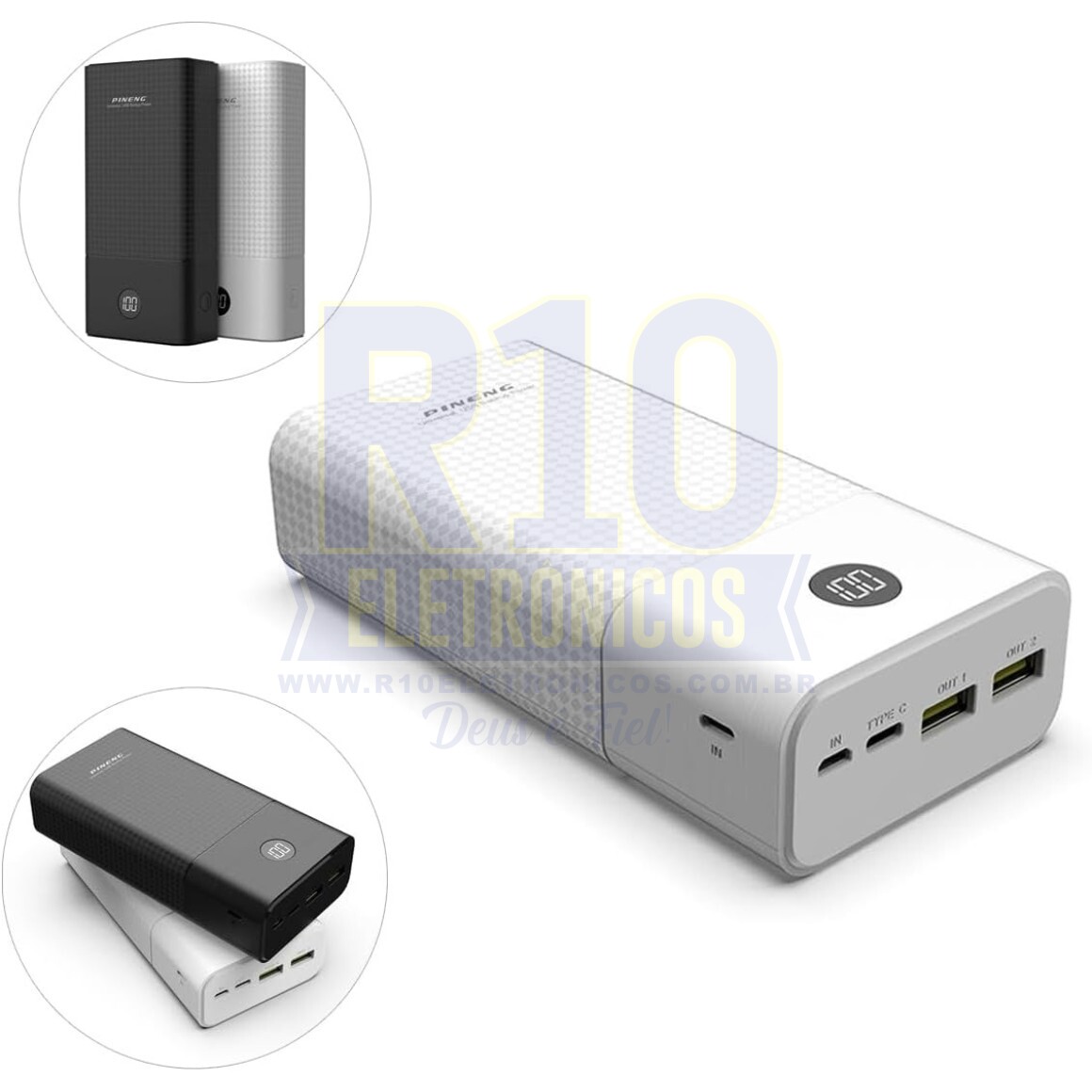 Tipo de conector USB Tipo C, USB Tipo A Marca Genérico Capacidade da bateria 30000 Milliampere Hour (mAh) Cor Branco Características especiais Carregamento rápido, Carregamento Super Rápido, Tela digital, Proteção contra Sobretensão, Proteção contra SobrecargaCarregamento rápido, Carregamento Super Rápido, Tela digital, Proteção contra Sobretensão, Proteção contra Sobrecarga Sobre este item Carregue celulares, smartphones, smartwatch e outros aparelhos que possuam entrada Lightning, Tipo-C e Micro-USB. O Carregador Portátil Original PINENG PN-899 possui 30.000mAh! Com ele você pode carregar o seu celular onde e quando quiser, dá para fazer de 5 a 8 recargas dependendo do modelo do seu aparelho. Para tornar o acessório ainda mais seguro, ele ainda vem com proteção contra variações de voltagem. Se como isso não bastasse, o PN-899 possui conexão Micro-USB, PD, USB Tipo-C e 2x USB Type A, tornando o carregador portátil compatível com qualquer celular, tablet e notebook. Tecnologia USB Power Delivery para Carregamento Super Rápido. Carregador Portátil homologado na ANATEL, garantindo níveis adequados de segurança elétrica e de emissões de radiofrequências, além de cumprirem exigências importantes como garantir assistência técnica no país. Capacidade da bateria: 30000mAh. Proteção contra sobrecarga e contra sobretensão Chip de reconhecimento de tensão inteligente detecta automaticamente a tensão.