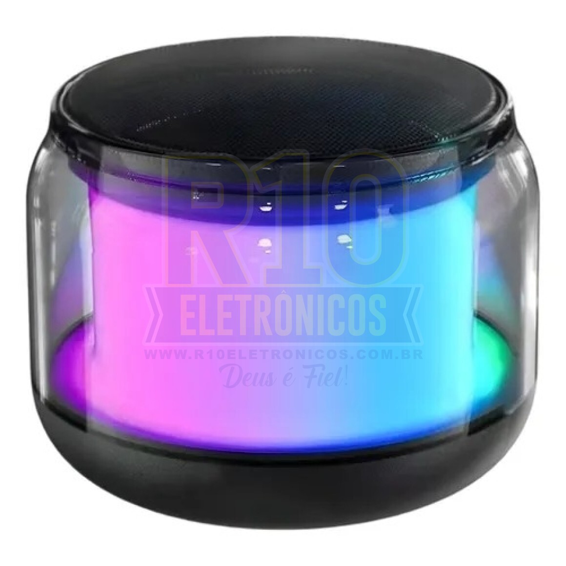 Tipo de alto-falante: subwoofer. Possui conectividade Bluetooth. Possui luzes LED. Bateria recarregável. Potência de 3W. Lugar de colocação: o piso. Tempo de carga da bateria: 2h