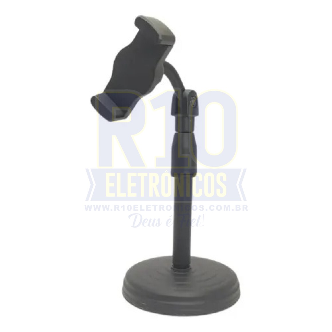 Descrição Do Produto Compatível com diversos modelos; - Suporte com ajuste de ângulo; - Pode ser colocado em mesas ou balcões, apropriado para conferências, discussões e apresentações; - Base redonda para segurar o microfone; - Produto desmontável, fácil de transportar; - Material: plástico.