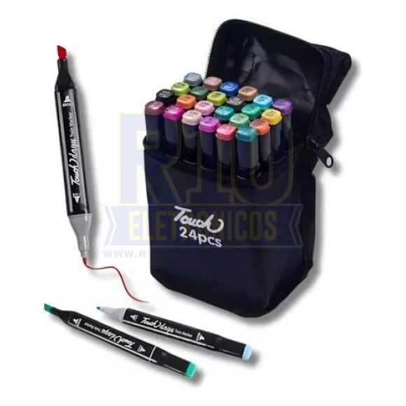 KIT ESTOJO CANETA TOUCH COM 24 CORES [2 PONTAS]CORES VIBRANTES, CANETAS DUAS PONTAS, CANETAS MARCADORES