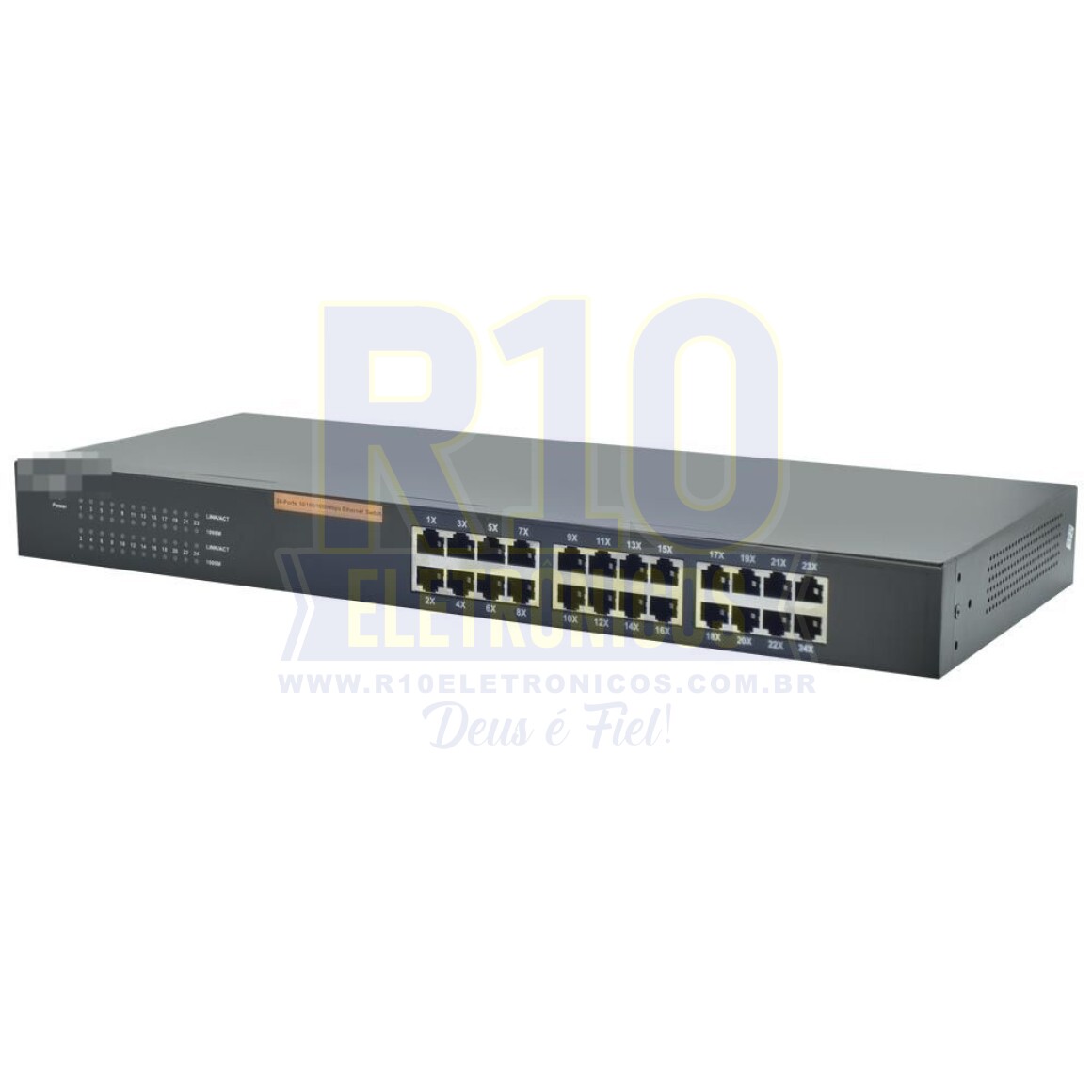 ESPECIFICAÇÕES * Compatível com os padrões: IEEE 802.3 10BASE-T, 100BASE-TX, Controle de Fluxo 802.3x, Autonegociação Nway. * Taxa de transferência: Fast Ethernet: 100Mbps (half-duplex), 200Mbps (full-duplex); Ethernet: 1000Mbps (half-duplex), 2000Mbps (full-duplex). * Tipo de cabo: 100BASE-T usando cabo UTP Cat.3, 4, 5; 1000BASE-TX usando cabo UTP Cat.5; 1000BASE-FX usando fibra mulltimodal. * Número de portas: 24 * Capacidade de comutação: 48 Gbps para o modelo de 24 portas. * Operação Full-duplex: compativel com IEEE802.3X, modo full-duplex para aumentar a eficiência da rede. * Configuração automática MDI/MDI-X: Reconhece automaticamente dispositivos sem configuração manual. * Transmissão de alta velocidade: Suporta até 1000Mbps, adaptando-se as necessidades da rede. * Larga compatibilidade: Compatível com uma vasta quantidade de protocolos de rede. * Alta capacidade de comutação: Cada porta suporta uma taxa de transmissão de até 148800 pacotes por segundo. * Luzes Indicadoras: LEDs integrados indicam status de energia, conexão, e velocidade, para monitoramento fácil em tempo real.