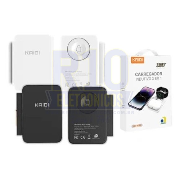 Apresentamos o Carregador Por Indução 3 Em 1 Dobrável 15w Original Kaidi, uma solução prática e eficiente para suas necessidades de carregamento. Com um design dobrável e compacto, este carregador é ideal para quem busca otimizar espaço e facilitar o transporte, seja em casa ou em viagens.