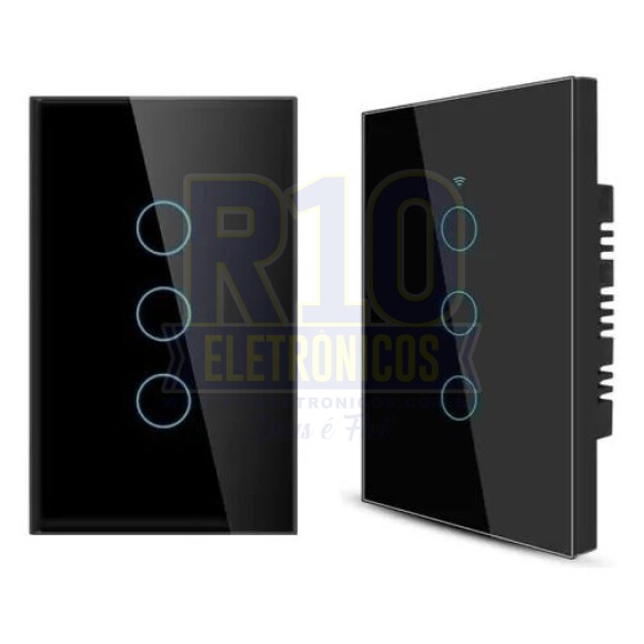 INTERRUPTOR SMART ATEK 3 BOTÕES BIVOLT PRETO COMPATÍVEL COM ALEXA/GOOGLE ASSISTENTE