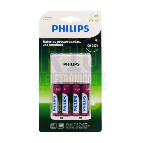 CARREGADOR DE PILHA PHILIPS C/4 AA 2450MAH SCB2445NB BIVOLT