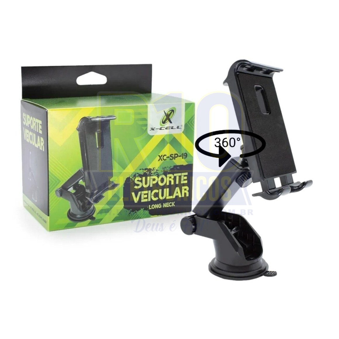O Suporte Veicular Long Neck X-Cell XC-SP-19 é um acessório indispensavel para quem precisa utilizar o GPS ou Smartphone para se locomover no trânsito. Com ele o usuário terá acesso aos seus aparelhos de forma rápida e fácil enquanto dirige. A ventosa de silicone proporciona uma fixação com alta aderencia em vários tipos de superficie, como vidro, madeira, plástico, etc, facilitando na hora de escolher o local mais apropriado para instalar. Ele se adapta a vários tamanhos de dispositivos e pode ser ajustado da maneira como o motorista preferir, já que a estrutura é retratil, podendo ser expandida em até 3,5 centimetros e tem movimentação de até 180º. A fixação do smartphone ou GPS é feita por alças emborrachadas para evitar arranhões no dispositivo, podendo acomodar aparelhos com até 8,5 cm de largura, girando em 360º.