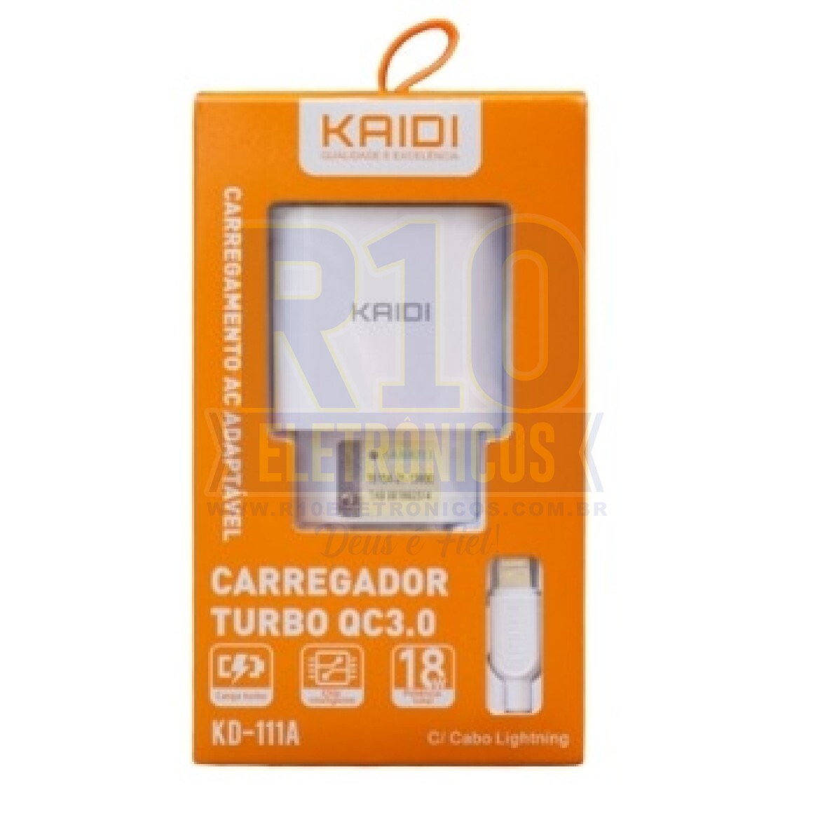 O Carregador Lightning KD-111A da Kaidi possui design compacto, faciitando o transporte.