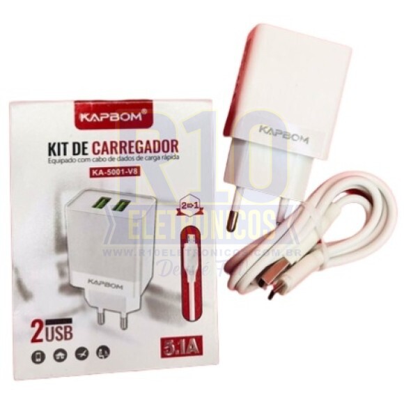 CARREGADOR KAPBOM KA-5001-V8 5.1A 2USB