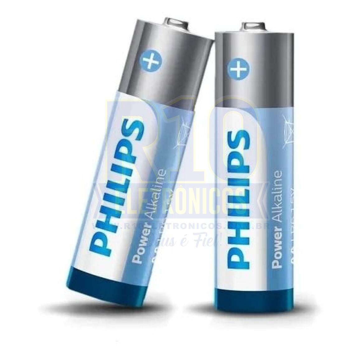 Pilhas alcalinas Philips cartela com 10 pilhas AA também conhecida como pilha pequena.