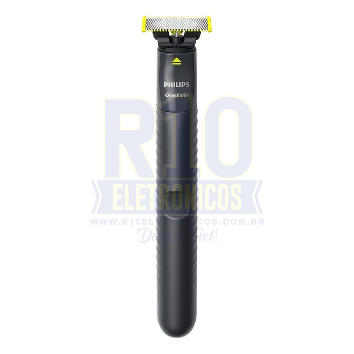 OneBlade QP1424/10 apara, modela e barbeia pelos de qualquer comprimento. Com o seu sistema de proteção dupla feito para cortar o pelo e não a pele, um revestimento para deslizar combinado com pontas arredondadas, torna o barbear mais simples e confortável. Possui 2 pentes para aparar e é completamente a prova d'água.