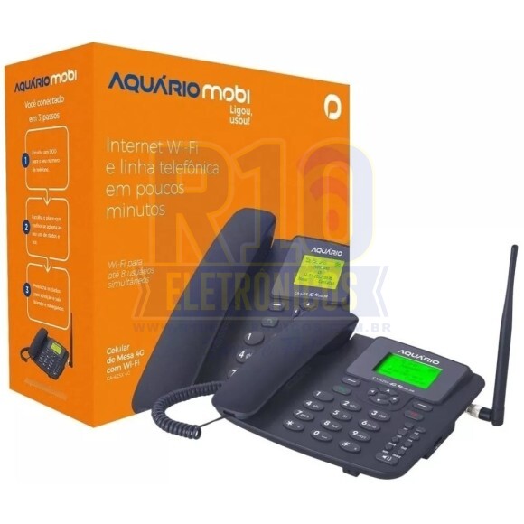 Com o Celular de Mesa 4G com Wi-Fi da Aquário você tem internet 4G/3G de alta velocidade, que pode ser compartilhada para até 8 dispositivos ao mesmo tempo através do seu poderoso Wi-Fi, além de telefonia de qualidade, com ligações mais claras e sem interferências. Isso tudo sem se preocupar com cabos, burocracia ou instalações complicadas, basta ligar e usar. O equipamento é uma solução prática e completa para conectar seu negócio, casa no campo ou residência, onde quer que você esteja, substituindo a telefonia fixa e até a internet via cabo/fibra. O Celular de Mesa 4G com Wi-Fi é Dual Chip, já vem com um chip da Aquário Mobi, operadora digital da Aquário, além de ser desbloqueado para todas as operadoras do Brasil.