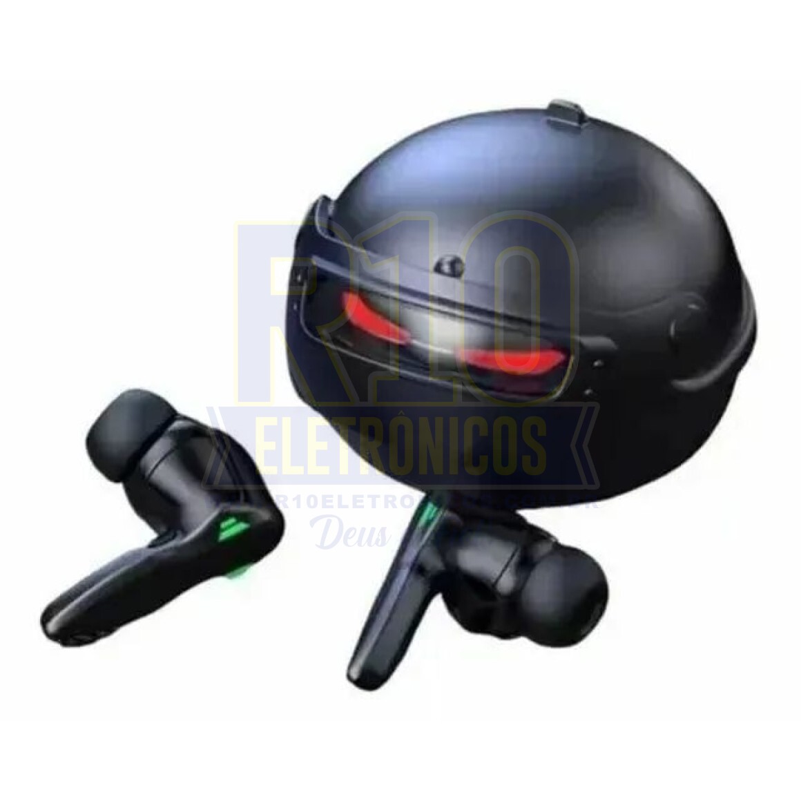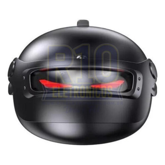 Este fone gamer vem com uma case super descolada em formato de capacete que fecha para dar mais segurança ao carregar seus fones no bolso ou na bolsa e mochila, com uma faixa transparente dando visão das luzes dos leds.