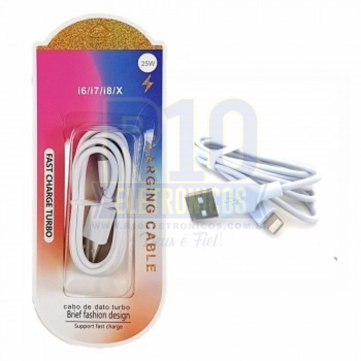 Características: - Cabo USB + Iphone - Carregamento rápido - Material resistente e durável - Evita enrolamentos - Cabo reforçadoEspecificações: - Comprimento do cabo: 1M - Capacidade: 3AContéudo:
