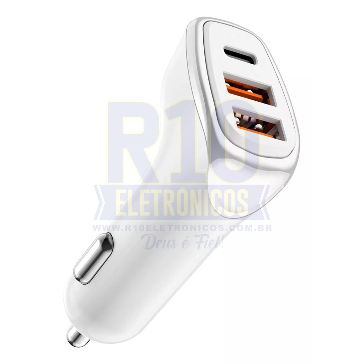 CARREGADOR VEICULAR TIPO-C KAIDI KD-304CC 38W (2USB-A + 1USB-C)