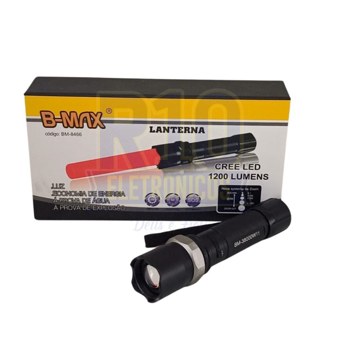 - Material: Liga de Alumínio de alta qualidade - 3 Modos: Alto, Baixo e Strobe - Zoom 1x, 250x, 1000x, x2000 - Distância: cerca de 300m - Lâmpada: CREE LED - Potência da lanterna em lúmens:1.200 lumes - Impermeável ou seja aprova d água - Aprova de explosão - Vida útil do LED: até 100.000 horas - Fio de alta resistência - Duplo suporte de carga anexoa