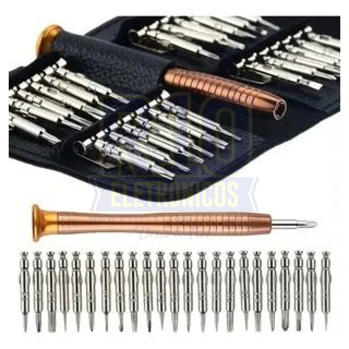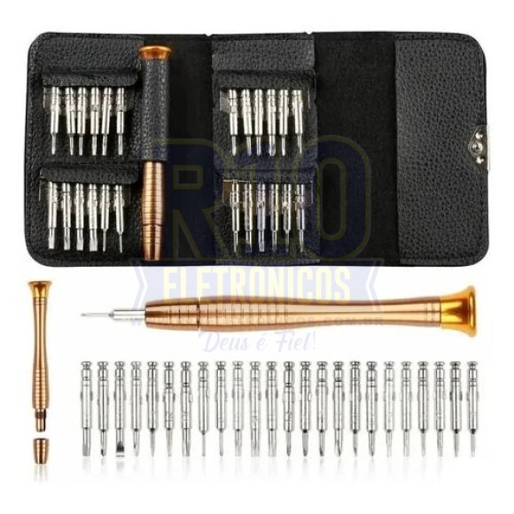 Perfeito para celulares impressoras, câmeras, controles, computarores, tablet etc. Contém todos os principais tipos de chave: Philips, Fenda, Y, Allen e Torx.