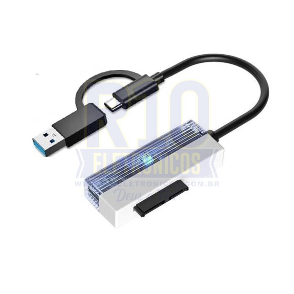 Cabo adaptador conversor usb 3.0 / type-c x sata hd827/accaracterí,sticas:- converte o padrã,o usb 3.0 / type -c em sata,- suporta hd / ssd sata 2.5mm - hd notebook slim- compatí,vel com usb 2.0, 3.0 e 3.1- plug an play.- alimentaç,ã,o: 5v (via porta usb)especificaç,õ,es:- compatibilidade: win 7 ou superiores, mac os 10.x com superiores, linux- velocidade de transferê,ncia de dados: 5gb- conexã,o usb: tipo a,- conexã,o sata: 7 + 15 pinos.