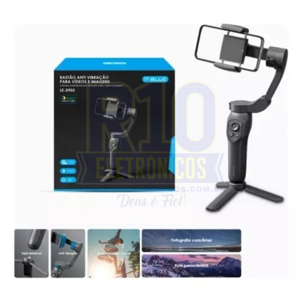 - Modo de usar: Retire a capa do Smartphone e coloque no Suporte Gimbal, segure firmemente o suporte e ligue-o.