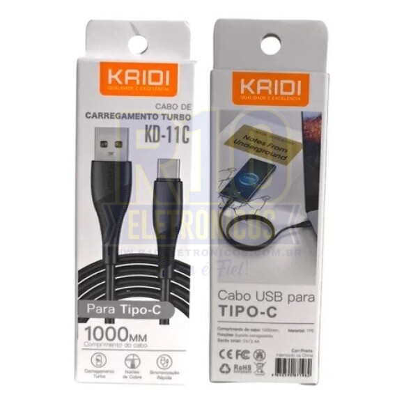 DescriçãoCABO USB TIPO C KAIDI KD-11C