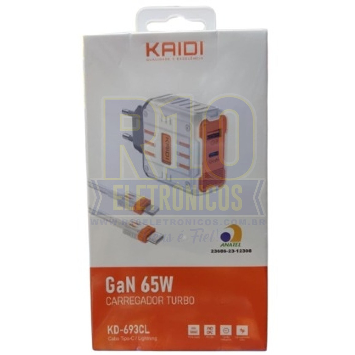 CARREGADOR IPHONE KAIDI KD-693CL 65W TURBO CABO USB-C/LIGHTNING