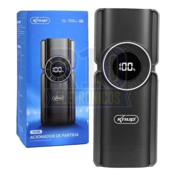 Acionador de Partida e Compressor de Ar Portátil Carregamento Digital USB 12V