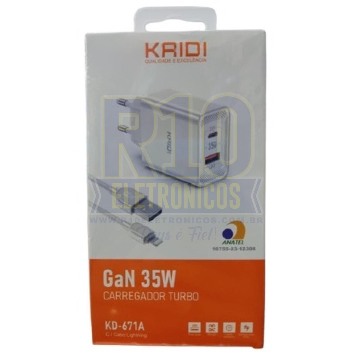 CARREGADOR USB KAIDI KD-671A USB-A/LIGHTNING GAN 35W