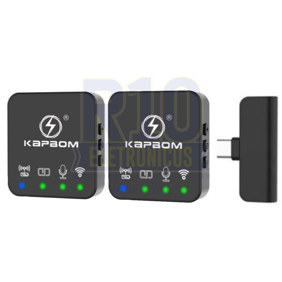 MICROFONE LAPELA SEM FIO KAPBOM KA-R10-TY-2IN1 DUPLO TIPO-C