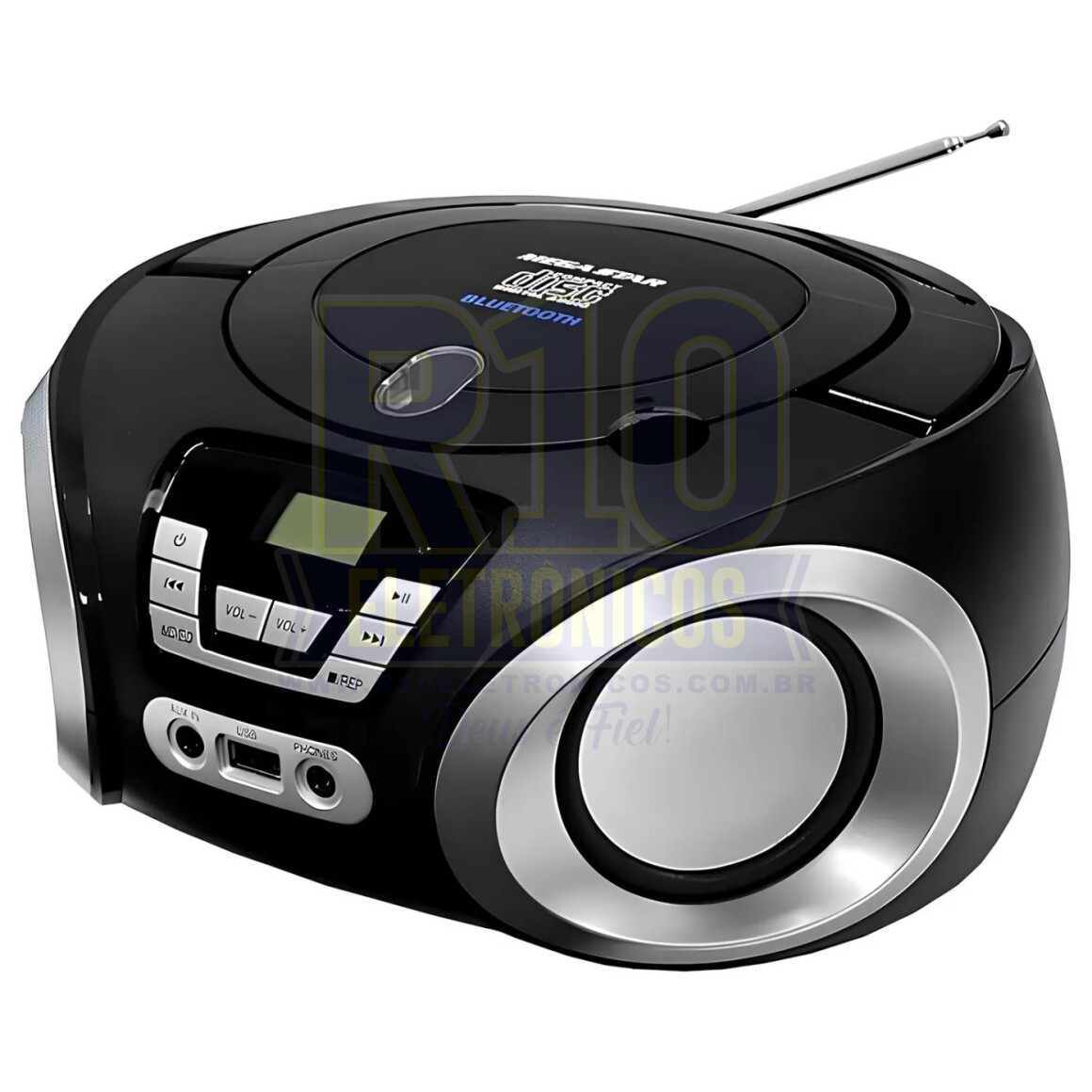 Com conectividade Bluetooth, compatível com CD-R/CD-RW, CD/MP3 Player, suporta USB, reprodução de MP3 player, Rádio FM com Antena retrátil, Entrada AUX, fone de ouvido estéreo, Função de Parada Automática, EQ / Funções de Repetição, Display LCD, Led Integrado ao redor do controle de volume, Potência de saída 8 RMS, Alimentação Bivolt