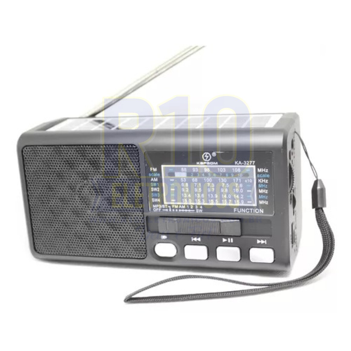 O Radio Portátil FM AM SW USB Cartão Memória Solar Bluetooth KA-3277 da marca Kapbom é um produto versátil e prático. Com sua banda de frequência AM, FM e SW, você pode sintonizar suas estações favoritas com facilidade. Além disso, possui entrada USB e para cartão SD, permitindo que você reproduza suas músicas preferidas.