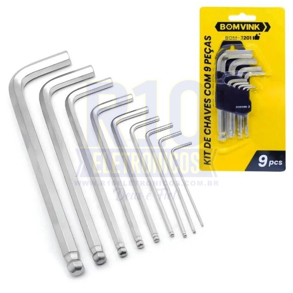 -Chaves Allen nos diâmetros: 1,5mm, 2,0mm, 2,5mm, 3,0mm, 4,0mm, 5,0mm, 6,0mm, 8,0mm e 10mm.