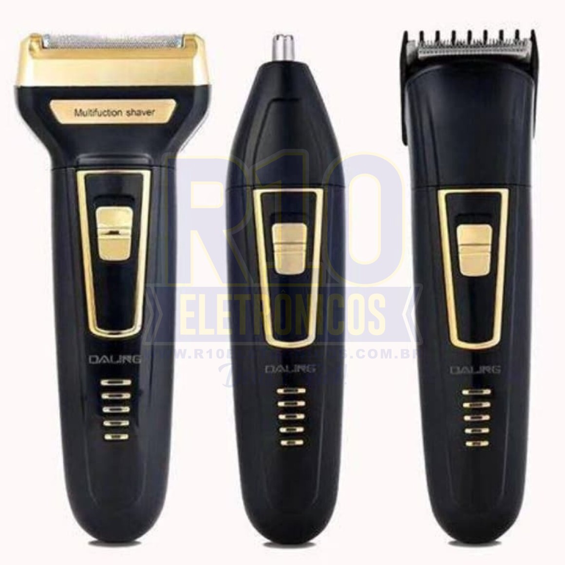 DALING RECARREGÁVEL CABELO BARBA NARIZ BARBEADOR - BARBEAR BARBA - NARIZ CORTE DE CABELO TRÊS CABEÇAS SEPARADAS EM UMA MÁQUINA Graças aos dentes de aço e aço inoxidável do dispositivo, ele ajuda você a cortar o cabelo facilmente. É um bom produto que os cabeleireiros podem usar facilmente. É muito simples e prático de usar. O dispositivo faz uma carga completa em 8 horas. 220-240V 50/60Hz 3W Valores são aplicados