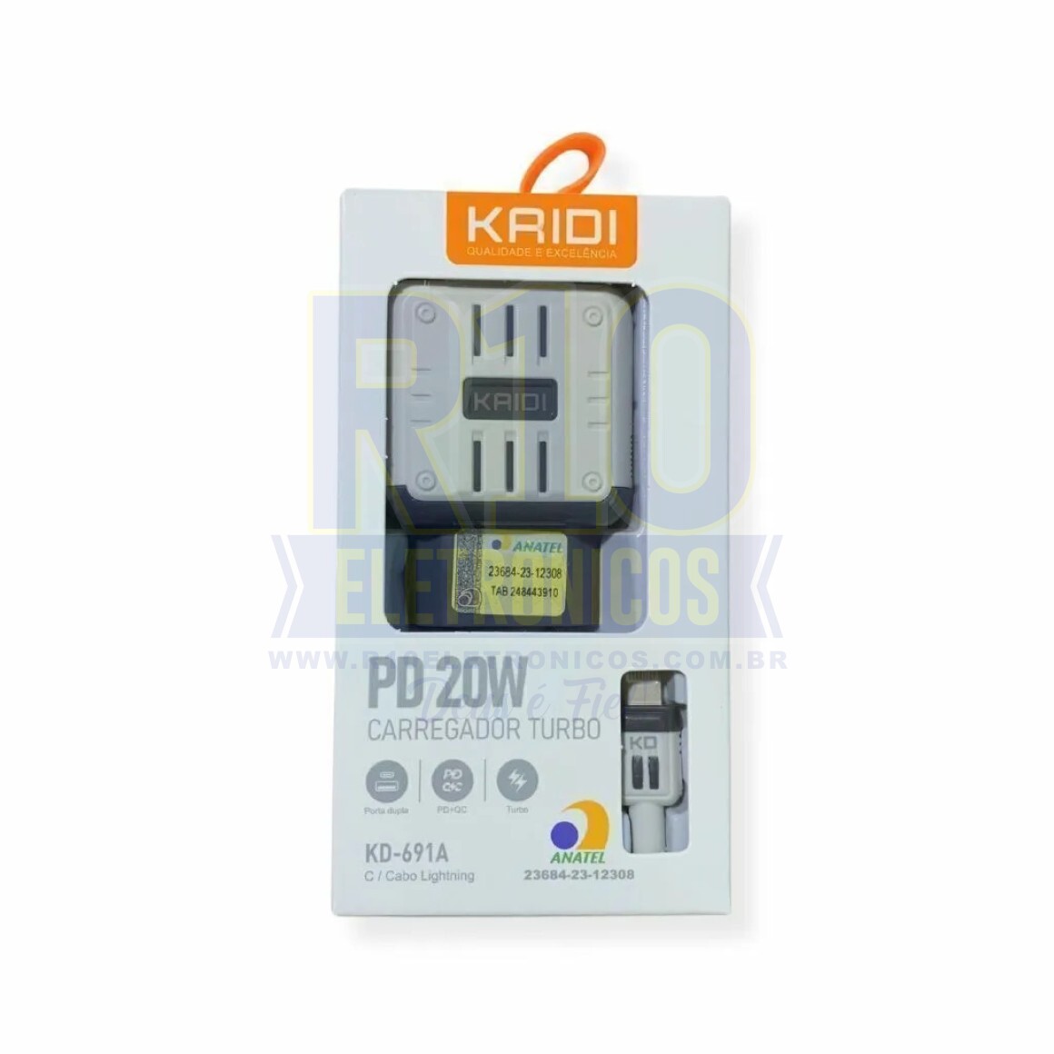 CARREGADOR IPHONE KAIDI KD-691A 20W TURBO CABO USB-A/LIGHTNING