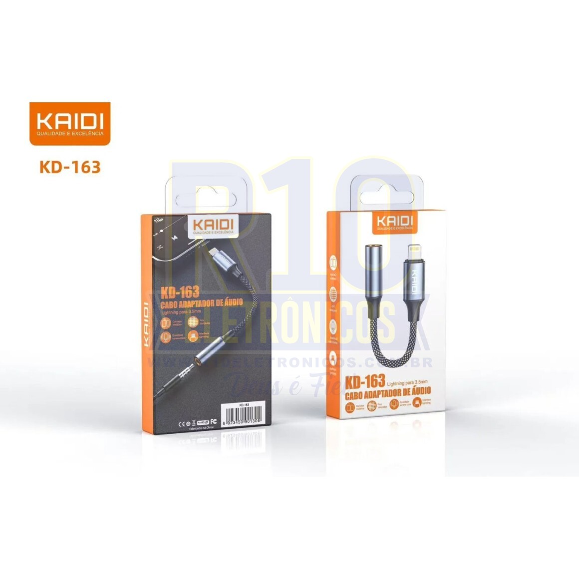 Cabo Adaptador de Áudio Lightning Para P2 Kaidi KD-163 O adaptador para iPhone Kaidi com conector Lightning e saída para fone de ouvido tipo P2 é a solução perfeita para quem deseja ouvir suas músicas favoritas ou conectar o som do seu celular em dispositivos que não possuem uma entrada P2 dedicada. Este adaptador de alta qualidade é compatível com todos os modelos de iPhone e garante uma conexão estável e confiável para seus fones de ouvido. Não Precisa ligar o Bluetooth. Com um design compacto e elegante, este adaptador é fácil de transportar, permitindo que você leve sua música onde quer que vá. Ele também possui uma construção durável e resistente, que garante que ele dure por muito tempo, mesmo com o uso diário. Pontas fabricadas em metal, dando mais segurança e melhorando a conexão do seu fone com o celular. Transmissão rápida e estável. Cabo revestido de nylon e reforçado. Suporta puxões e não enrola! Produto de qualidade e durabilidade! Desenvolvido com materiais altamente resistentes. Então, se você deseja desfrutar de sua música com seus fones de ouvido tradicionais em seu iPhone, este adaptador é a escolha ideal. Não espere mais e adquira agora mesmo este adaptador para iPhone com conector Lightning e saída para fone de ouvido tipo P2. Modelo apenas para ouvir músicas ou ligar o seu celular no som do carro ou caixas de som. Não funciona o microfone. Especificações Técnicas: Modelo: KD-163 Entrada: Lightning Saída: P2 ou P3 3.5mm Comprimento: 12 cm