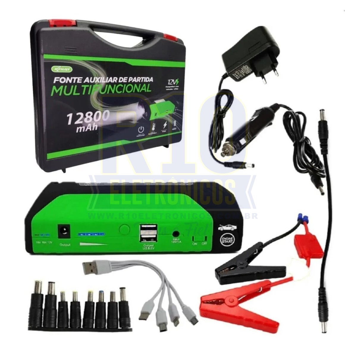 Além de multifuncional, este carregador acompanha um compressor de ar e dois modelos de cabo de carregamento, um que possui garras tipo jacaré, para dar uma pequena carga e ligar o veículo e outra com multi cabos USB, que carrega vários dispositivos eletrônicos, como: celulares, tablets, computadores e GPS com grande eficiência.