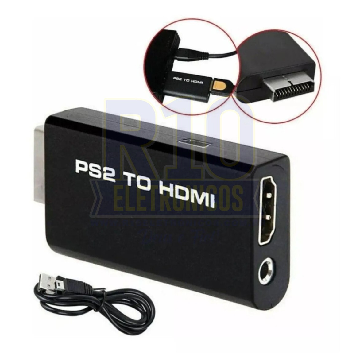 Conversor PlayStation 2 para HDMI Adaptador PS2 TO HDMI Converter C300 Aproveite o máximo dos gráficos do seu PS2 numa TV com HDMI! O PS2 to HDMI é um conversor para o console Playstation 2, saídas de vídeo e áudio na íntegra com formato digital HDMI, suporta todos os modos de exibição do PS2 (480i, 576i, 480p). Com apenas um cabo HDMI Plug and Play para áudio e vídeo você terá os melhores efeitos em sua TV HD ou Full HD, ele aumenta a qualidade gráfica dos jogos, deixando o seu PS2 com qualidade muito melhor em sua TV. Compatível com PS3 também, alcançando resolução 1080p Características: - Vídeo e áudio na íntegra com formato digital HDMI, sem perda de transmissão - Funciona com qualquer monitor ou TV com entrada HDMI - Sem complicações! - Suporta todos os modos de exibição do PS2 - Modo de entrada de vídeo suportados: 480i, 480p, 576i - Emite sinais digitais puros em HDMI de vídeo e áudio - Conector de Entrada: PS2 AV Multi - Conectores de Saída: 1x Conector HDMI, 1x conector P2 estéreo de 3.5 mm áudio Itens Inclusos: - PS2 to HDMI Conversor - Cabo de Alimentação USB
