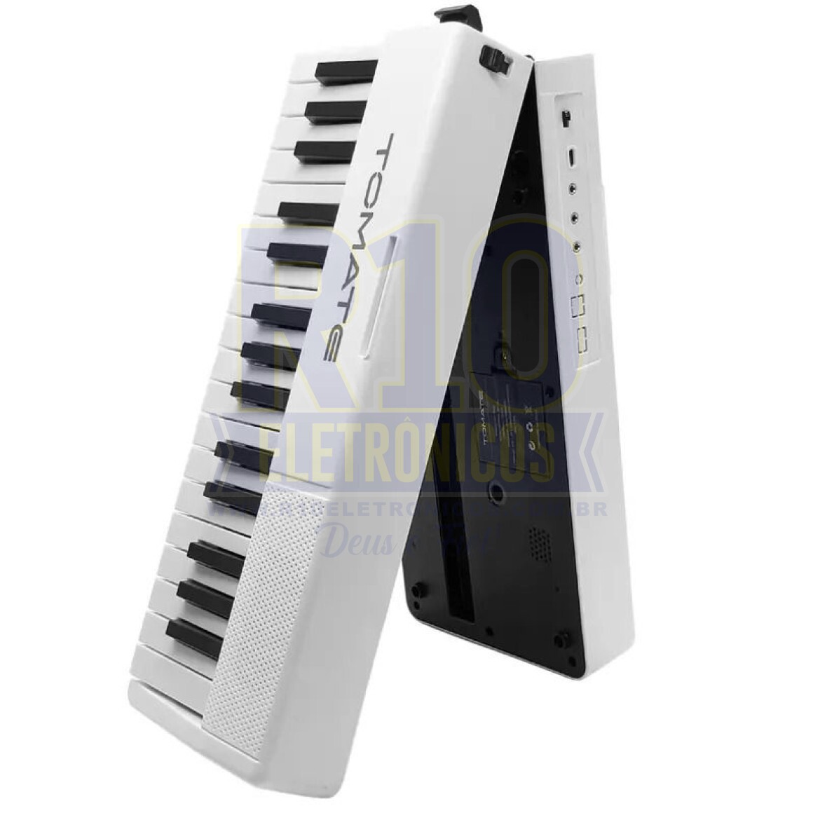 Teclado Eletrônico Tomate MSY-9995 Branco - 61 Teclas Dobrável, Microfone, Bateria Interna, 200 Ritmos e Timbres, Função Aprendizado para Iniciantes