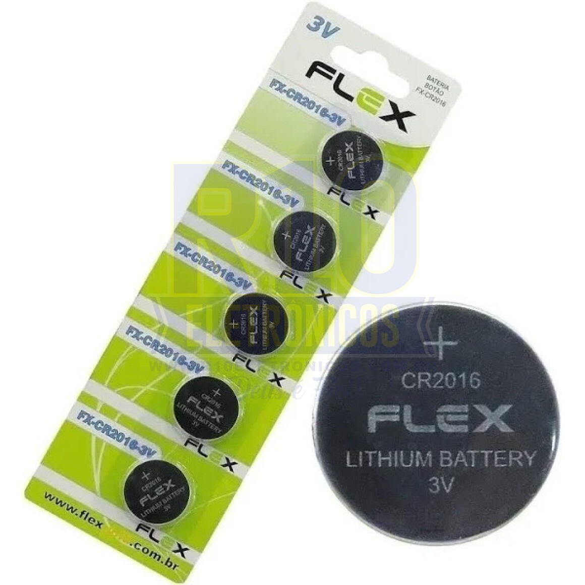 Pilha De Lithium Flex CR2016 Modelo Botão Voltagem 3V Lithium Amperagem 70 mAh Cartela com 5 unidades Compatível com calculadoras , agendas eletrônicas , placas mãe de computadores , controles remotos , chaves de carro , entre outros